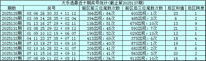 东莞市大朗发达五金制品厂 138期金年顺大乐透预测奖号:前后三码定位分析