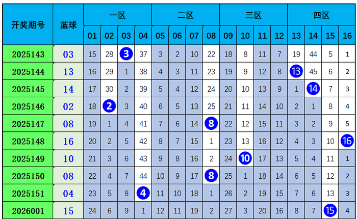 近十期奇数号码开出3期,偶数号码开出7期,偶数号码走势较高;近十期蓝球大码开出5期,小码开出5期,大小码走势平衡。凭据走势分析,本期看好蓝球号码05。